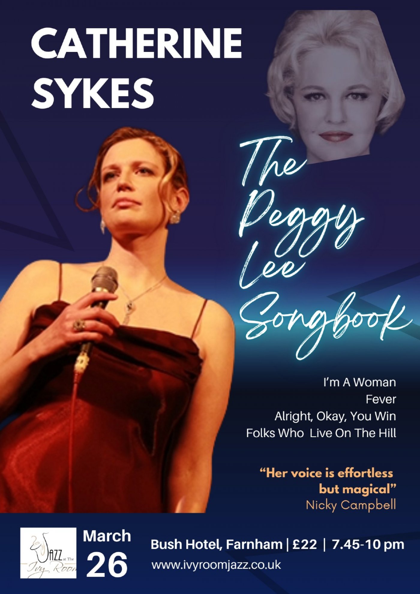 "Catherine Sykes is an exceptional singer of rare personality and intensity who has a voice to die for. Her vocal range is astonishing… " David Scott – Blues Matters magazine