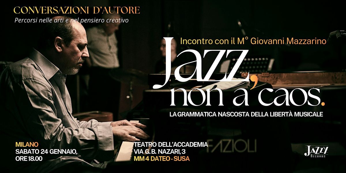 Il primo ospite della rassegna è Giovanni Mazzarino, pianista, compositore e didatta, uno dei musicisti più autorevoli del Jazz Italiano che In Jazz, non a caos guiderà il pubblico in un viaggio dentro il jazz inteso come linguaggio rigoroso e, al tempo stesso, aperto: un sistema articolato in cui nulla è lasciato al caso e in cui la libertà espressiva nasce sempre da una profonda consapevolezza delle strutture.