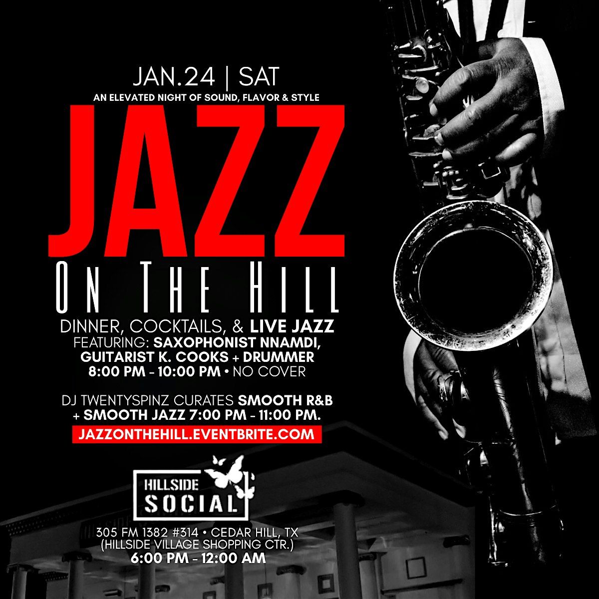 Step into an evening of pure ambiance as Hillside Social hosts “JAZZ ON THE HILL” — where smooth sounds, stylish energy, and refined company come together under the glow of city lights.