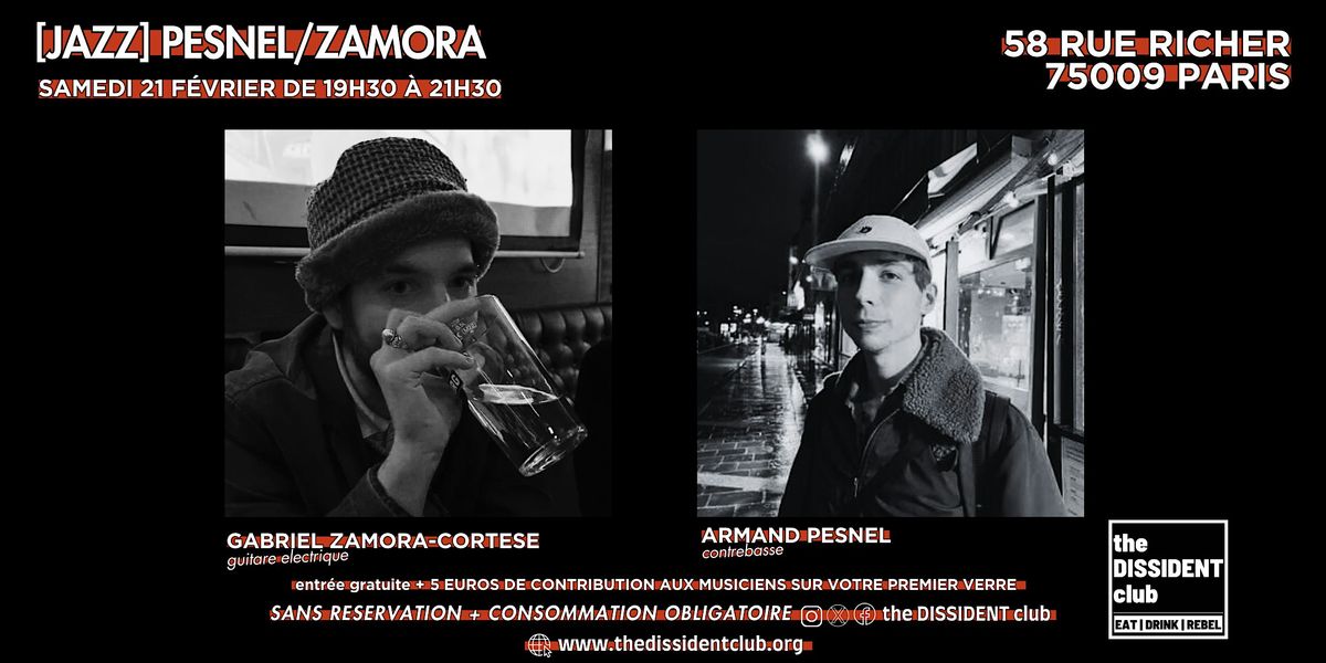 Gabriel et Armand vous proposeront un voyage musical intimiste et vibrant. Au fil du concert, ils interpréteront des compositions originales, des reprises revisitées et de grands standards de jazz en format duo, mêlant improvisation, complicité et sensibilité. Une soirée chaleureuse, élégante et pleine d’émotions partagées avec une énergie sincère.