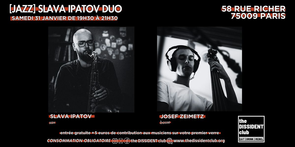 Le duo Slava Ipatov – Josef Zeimets vous invite à un moment musical d’exception.Compositions originales et mélodies favorites se dévoilent dans un dialogue raffiné, portées par le son magique du saxophone et la profondeur de la contrebasse. Une expérience intime, élégante et envoûtante.