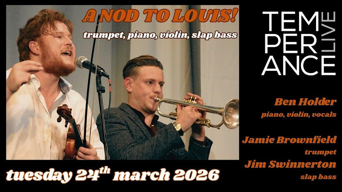 This will be a CELEBRATION OF THE LEGENDARY Louis Armstrong and other jazz trumpet greats! Featuring the amazing trumpeter Jamie Brownfield along with Ben Holder/Piano,Violin & Vocals, Jim Swinnerton/Double Bass.