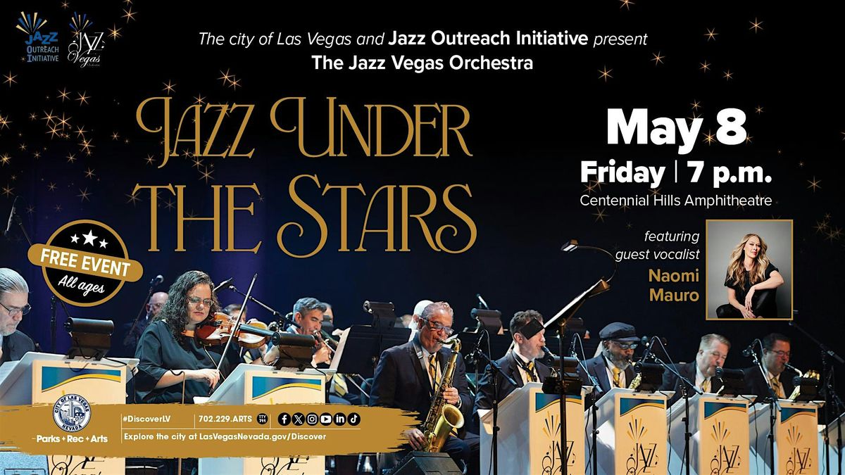 Bring the whole family out and relax under the stars as the city’s most acclaimed big band, the Jazz Vegas Orchestra dazzles with iconic big band standards and new music from celebrated local arrangers featuring renowned jazz vocalist Naomi Mauro!