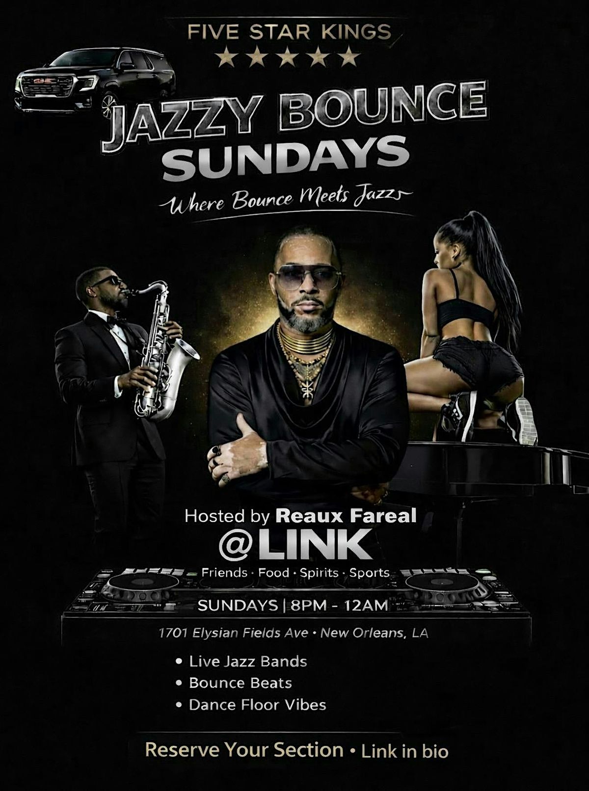 Get ready to chill and groove at Jazzy Bounce Sundays, the coolest in-person vibe hosted by the one and only Reaux FaReal! Whether you’re here to bounce to some smooth jazz beats or just soak in the good energy, this is the spot for your Sunday fun. No fuss, just pure vibes and great company. Don’t miss out—come link up and feel the bounce!