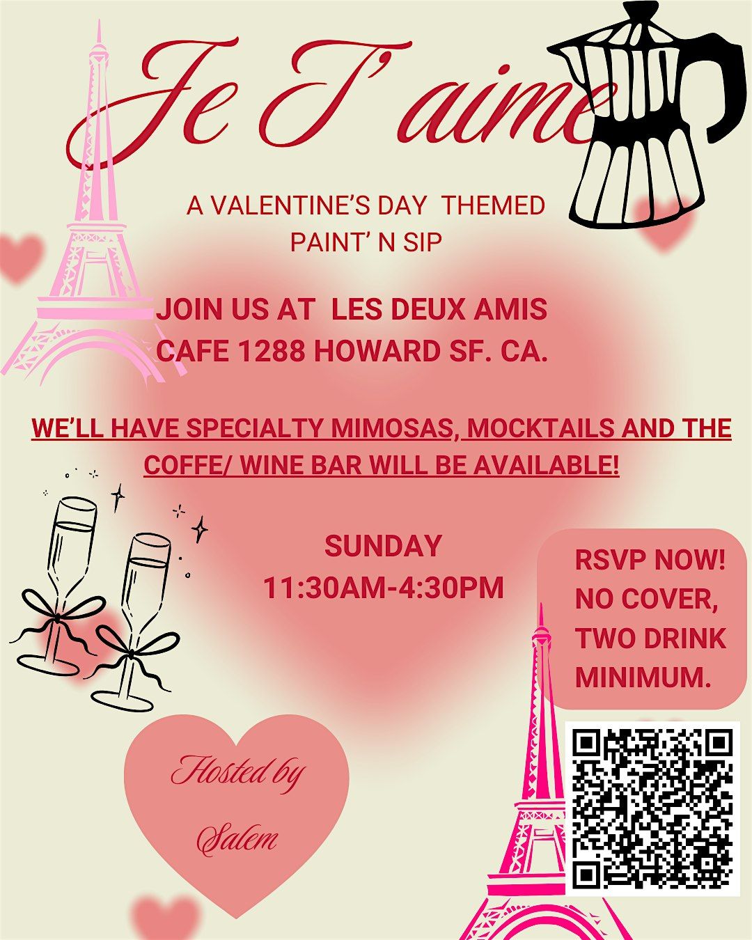 At this paint n sip we'll be celebrating love! In addittion to painting, we'll have specialty mimosas, mocktalis and the coffee/wine bar will be available! The two drink minimum covers the cost of supplies