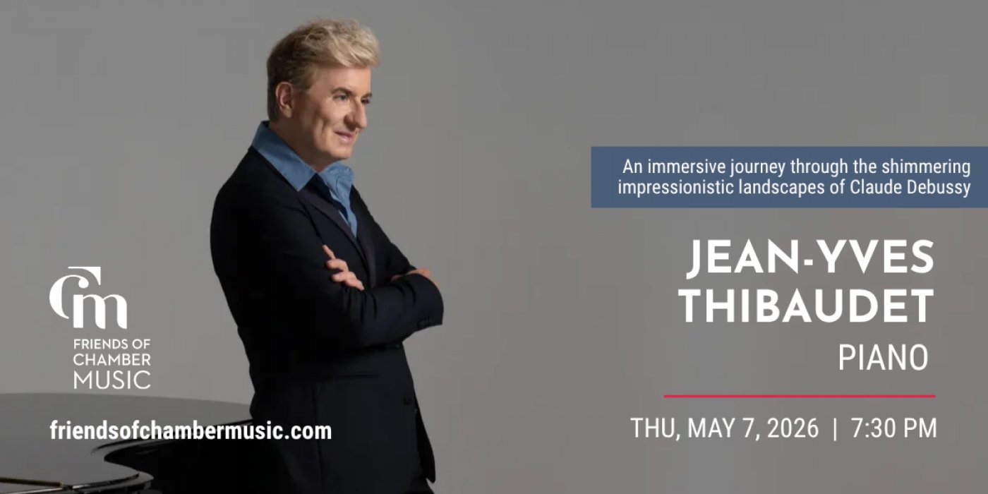 Step into a world of sound, color, and imagination as renowned pianist Jean-Yves Thibaudet performs all 24 of Claude Debussy’s Préludes—an immersive journey through one of music’s most atmospheric masterpieces. This landmark program, closing Friends of Chamber Music’s 2025-26 season, marks Thibaudet’s first solo recital with FCM since 2011. The performance takes place Thursday, May 7 at Gates Concert Hall at the Newman Center for the Performing Arts.