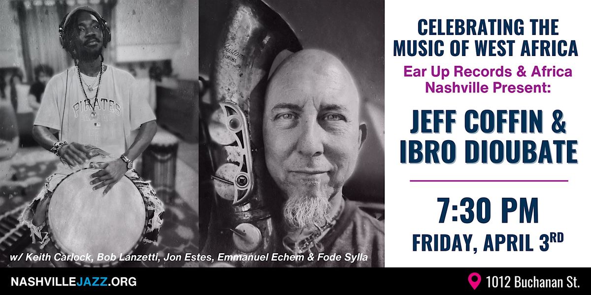 Many musical worlds will collide in one extraordinary evening at the Jazz Cave on April 3, 2026. Grammy-winning saxophonist Jeff Coffin — a globally recognized musician and educator known for his 14 years and 3 Grammy Awards with Béla Fleck & the Flecktones, and his ongoing role (18 years+) with Dave Matthews Band, and his over 11 years teaching at the prestigious Vanderbilt University — joins forces with recent Nashville transplant Ibrahima "Ibro" Dioubate, a master djembefola born into the Yeli tradition and celebrated internationally for sharing the rich culture of Guinea Conakry. Together, they bring an all-star ensemble to the NJW stage for a night of music that transcends borders.
