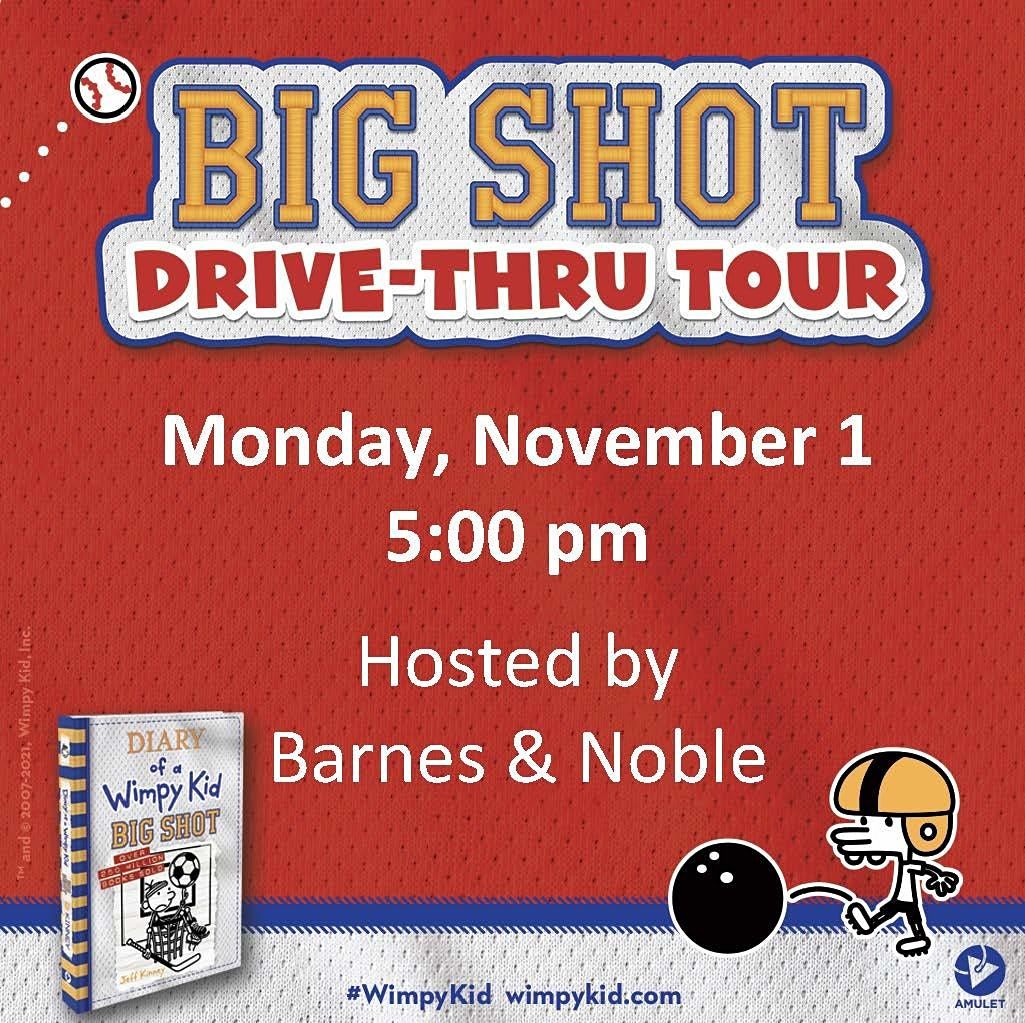 - Admission to the BIG SHOT Drive-Thru event space, culminating with a curbside, socially-distanced book delivery by Jeff Kinney.*
