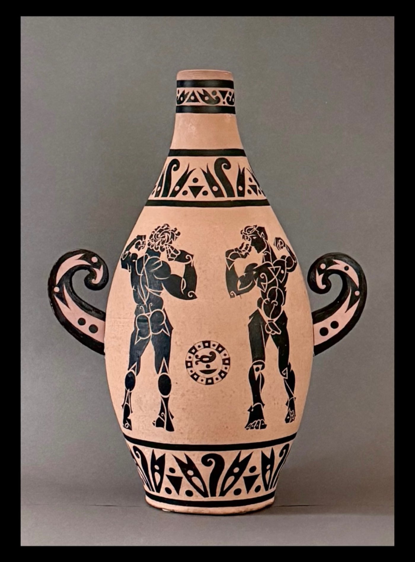 With Slant on a Grecian Urn, JEFF MILLER takes his witty and decorative slant on ancient Greek black figure pottery from the two-dimensional drawings that he showed in his most recent exhibition (January 2024) to actual three-dimensional terra cotta vases and urns.