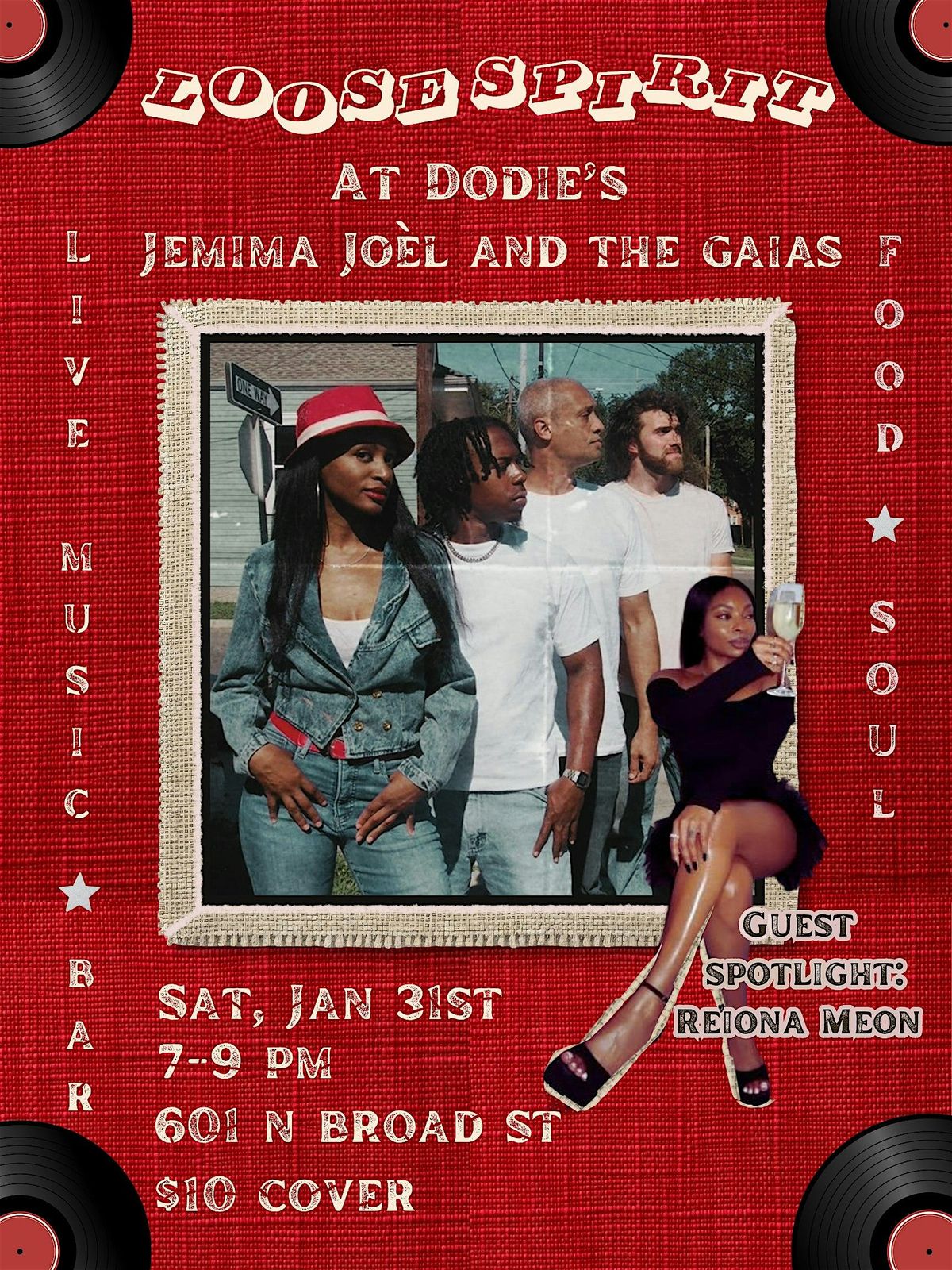 An epic night with Jemima Joel and The Gaias Featuring Guest Artist Reiona Meon at Dodie’s. Come and let your Spirit Loose! $10 at the Door!About this Event