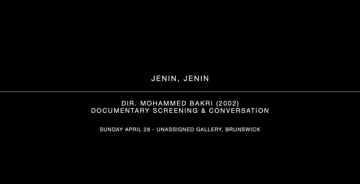 JENIN, JENIN - DOCUMENTARY SCREENING. Dir. Mohammed Bakri (2002). Featuring a live conversation with Palestinian activist, Rami Abualsebaa, who was born and raised in Jenin Refugee Camp.