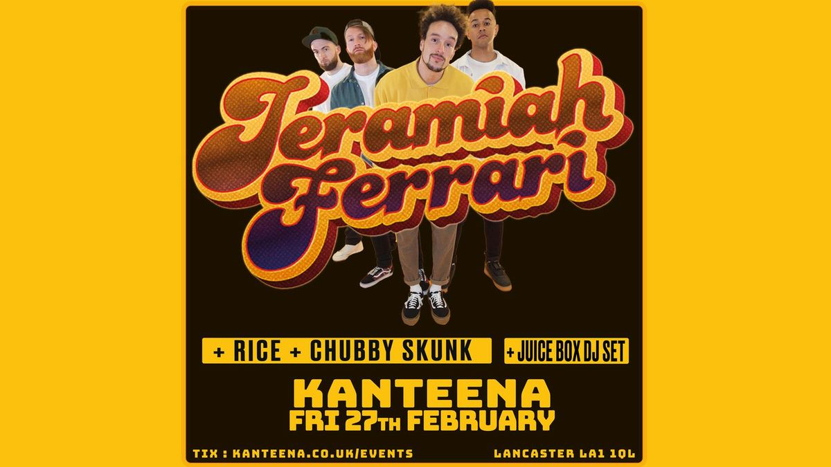 We welcome back Jeremiah Ferrari who will be busting out their clever genre-bending set, ranging from rock to reggae to ska to pop. With support from Rice, and Chubby Skunk.Disclaimer: