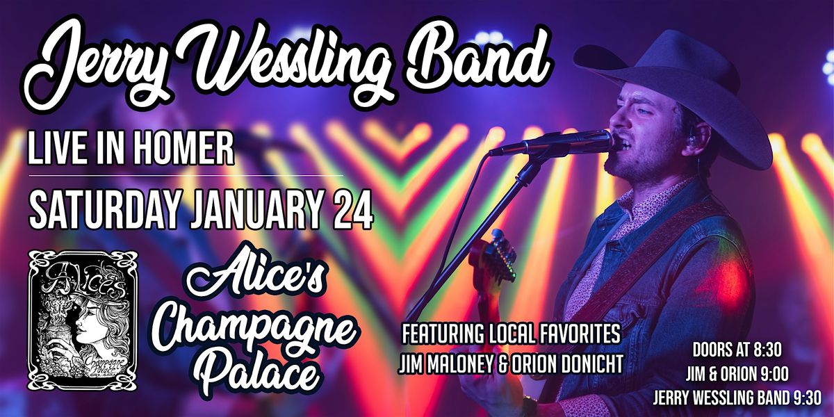 HOMER! Sat, Jan 24, Jerry Wessling Band comes to Alice’s Champagne Palace. Tickets $15 in advance, $20 at the door. 21+