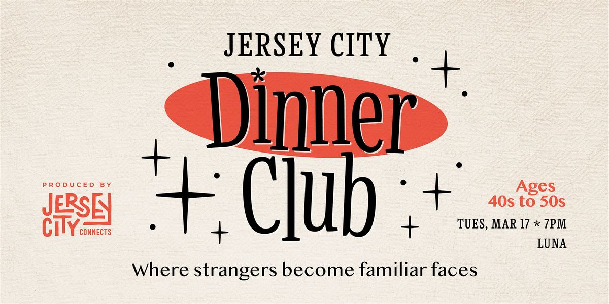 Join Jersey City Connects for dinner at Luna on Grove Street, where a diverse group of adults in their 40s and 50s β singles and couples both welcome β will share a meal and maybe leave with a few people worth seeing again.