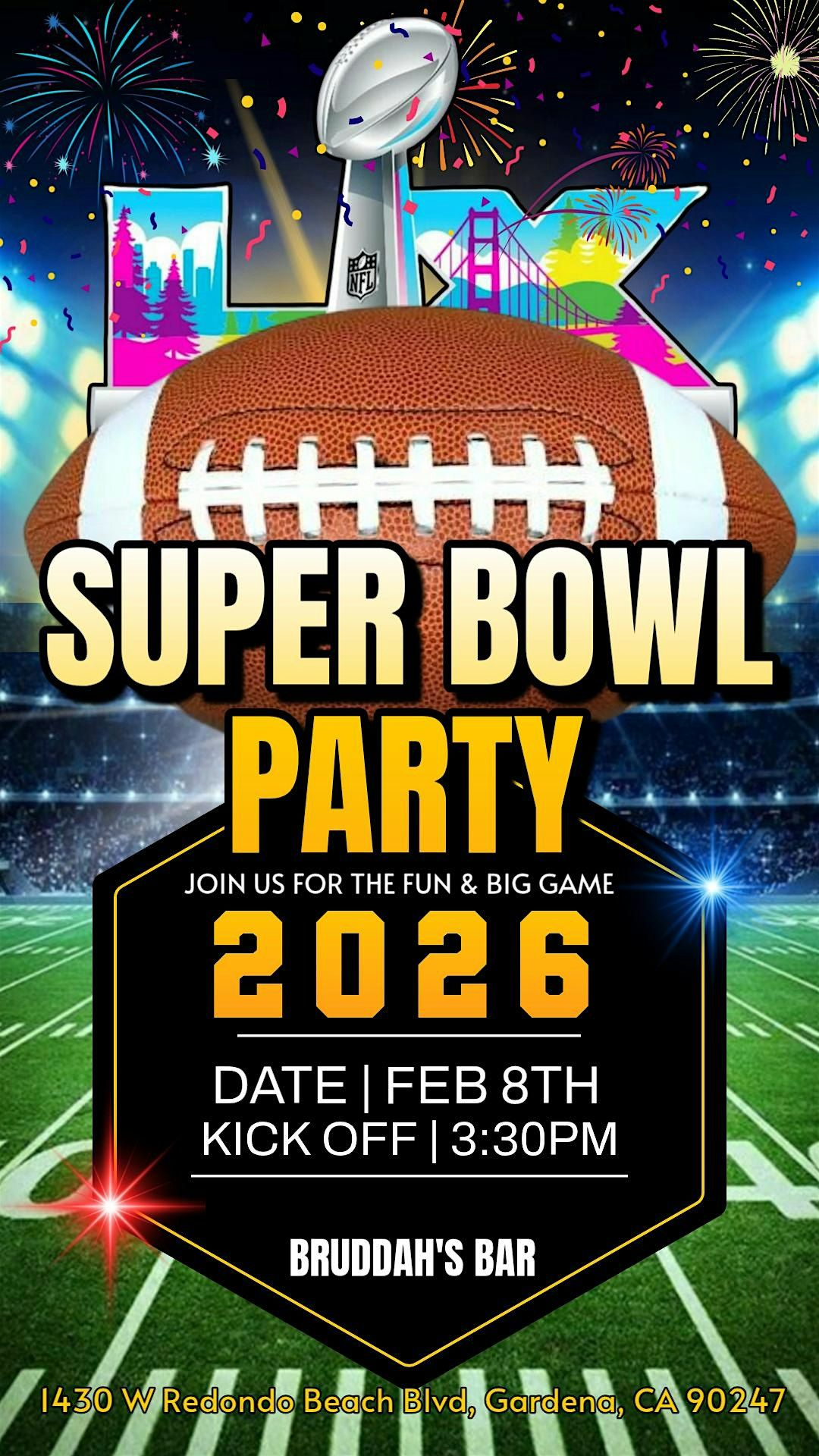 Bring your squad, grab a drink, and let's make Super Bowl LX a night to remember!