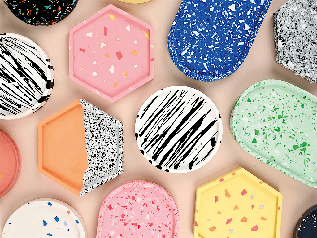 Fancy doing something creative in the heart of Hamburg? Then come to our Jesmonite workshop in a colorful location in the heart of the Schanze district! Whether you're a beginner or just want to get creative with your hands again – you've come to the right place. You can choose one of two techniques on site: either you can enjoy a smooth flow with Jesmonite marbeling or you can try out the trendy terrazzo look.