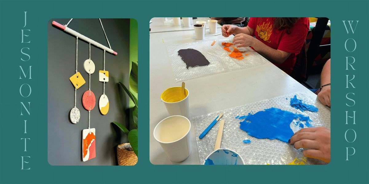 Evening 1: jesmonite intro, choosing your colour story and composition, mixing and pouring pendants, painting wooden rod