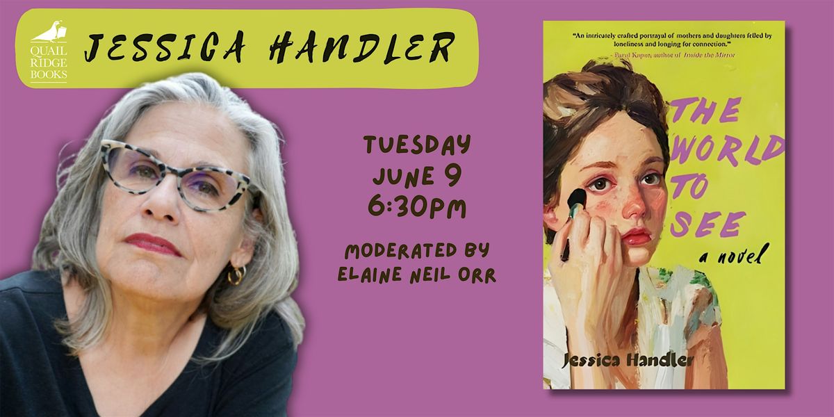 Tickets include a copy of The World to See, guaranteed entry to the event, and a seat in the reserved section. Jessica will be in conversation with Elaine Neil Orr and will sign books after the program.