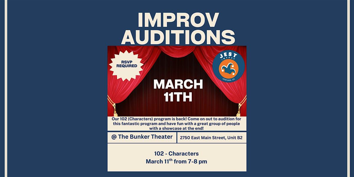 Feel free to bring any kind of resume if you'd like but it's certainly not required. The Improv 102 program will start on March18th. The showcase is set to be on April 25th. RSVP is required to audition.