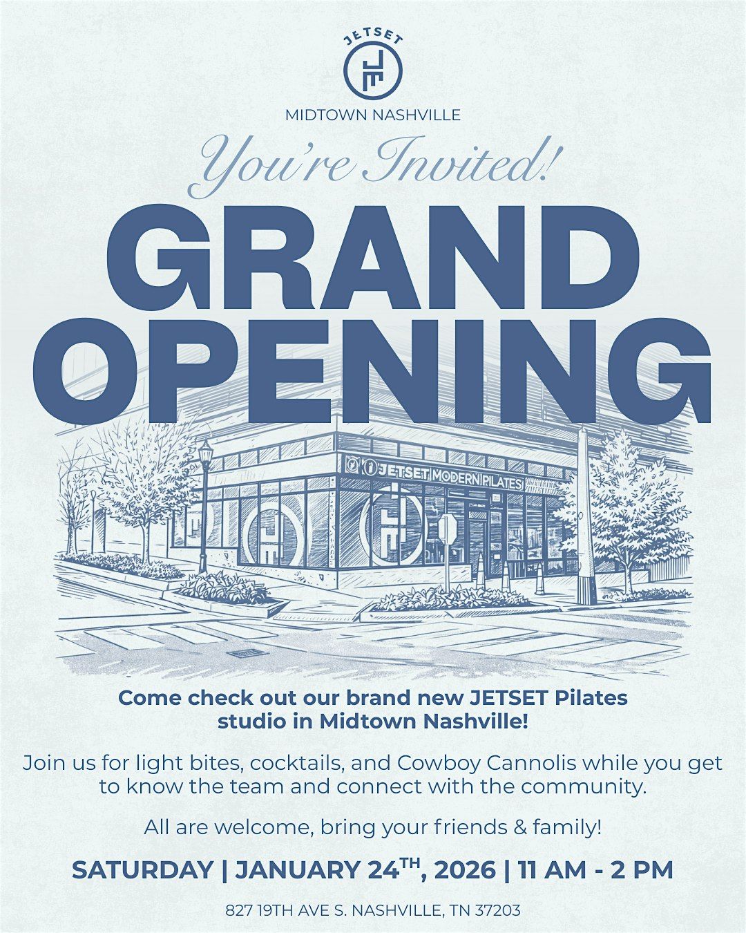 Join us as we celebrate the Grand Opening of JETSET Pilates Midtown Nashville β our brand-new studio in the heart of Midtown Nashville.