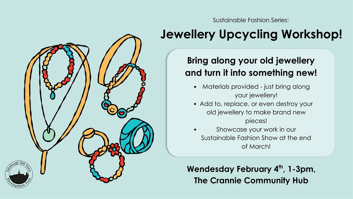 As part of our Sustainable Fashion series, come and upcycle your old unworn jewellery! We will provide all upcycling materials, including bits to help snazz up your pieces or take them apart to make something entirely new!