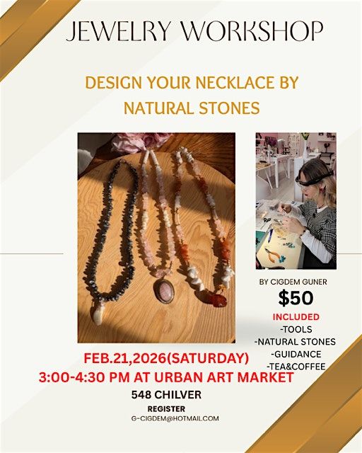 Join us for a fun, hands-on in-person workshop all about crafting beautiful jewellery using natural stones! Whether you're a newbie or a pro, you'll learn cool techniques and get to create your own unique pieces. It's the perfect chance to unwind, get creative, and connect with others who love jewellery as much as you do. Don’t miss out on this awesome experience!