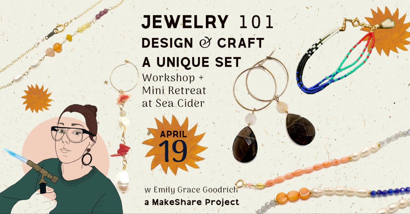 JEWELRY 101 MINI RETREAT ~ Make your own jewellery and craft the necklace and earrings (or bracelet) of your dreams! Whether you love big, bold pieces or delicate charm, both styles are connected by the same basic skills. In this introductory workshop, you'll learn to use essential jewellery materials and pliers for assembly and wire wrapping. Take home your extra materials and tools for more practice, or use them to make basic repairs to jewellery you already own.
