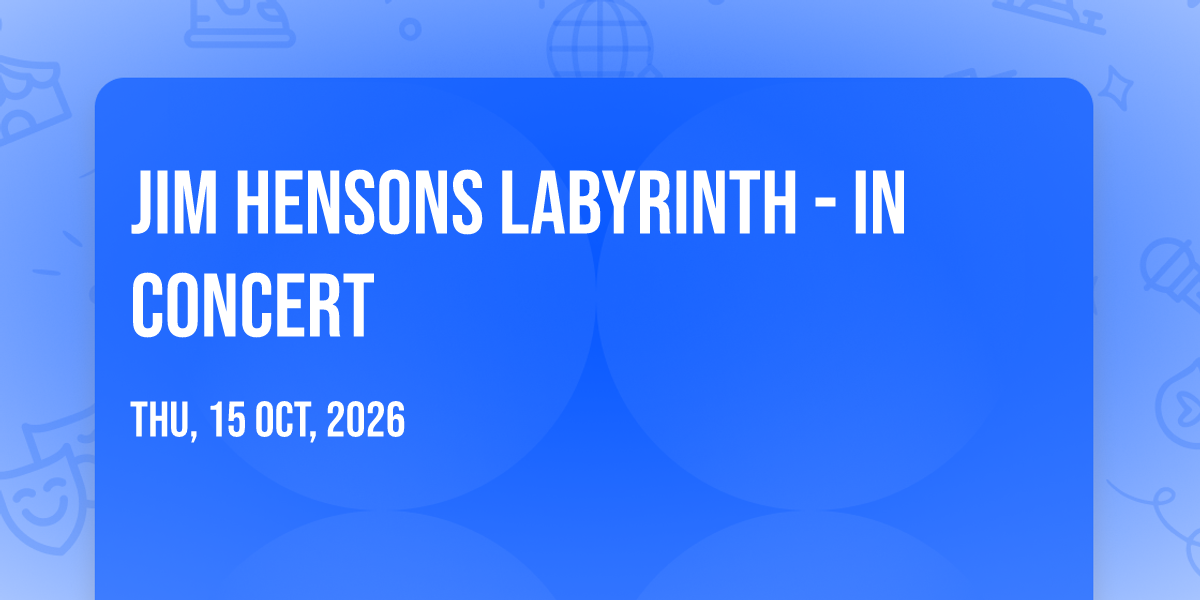 📍 Location: 40.766, -111.851🌟 Be part of history at Jim Hensons Labyrinth - In Concert, an extraordinary gathering that will captivate your imagination! 🏛️ The prestigious Kingsbury Hall in Salt Lake City, UT sets the stage for an unforgettable experience on October 15th, 2026 at 01:30 AM. ✨ They are bringing together the finest elements of entertainment and innovation to create moments that will take your breath away. From the moment you arrive, you'll be immersed in an atmosphere of wonder and excitement. 🎯 This carefully planned event ensures every guest experiences something truly special. 🎊 Early booking is recommended for this must-attend event of the season!