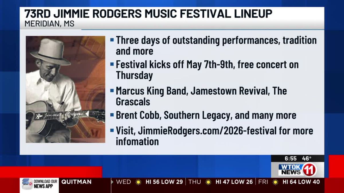 📍 Location: 32.3636, -88.7021🎉 Welcome to Jimmie Rogers Music Festival with Marcus King, Brent Cobb, where dreams come alive and possibilities are endless! 🏛️ Join us at City Hall Lawn in the heart of Meridian, MS for an event that defies expectations. 📅 On May 9th, 2026 at 09:00 PM, be part of something truly extraordinary as we bring together innovation, entertainment, and pure magic. ✨ Every aspect has been carefully designed to ensure an unforgettable experience for all our guests. Whether you're seeking adventure, inspiration, or simply a break from the ordinary, this event promises to deliver beyond your wildest dreams. 🎊 Prepare for a journey into the extraordinary!