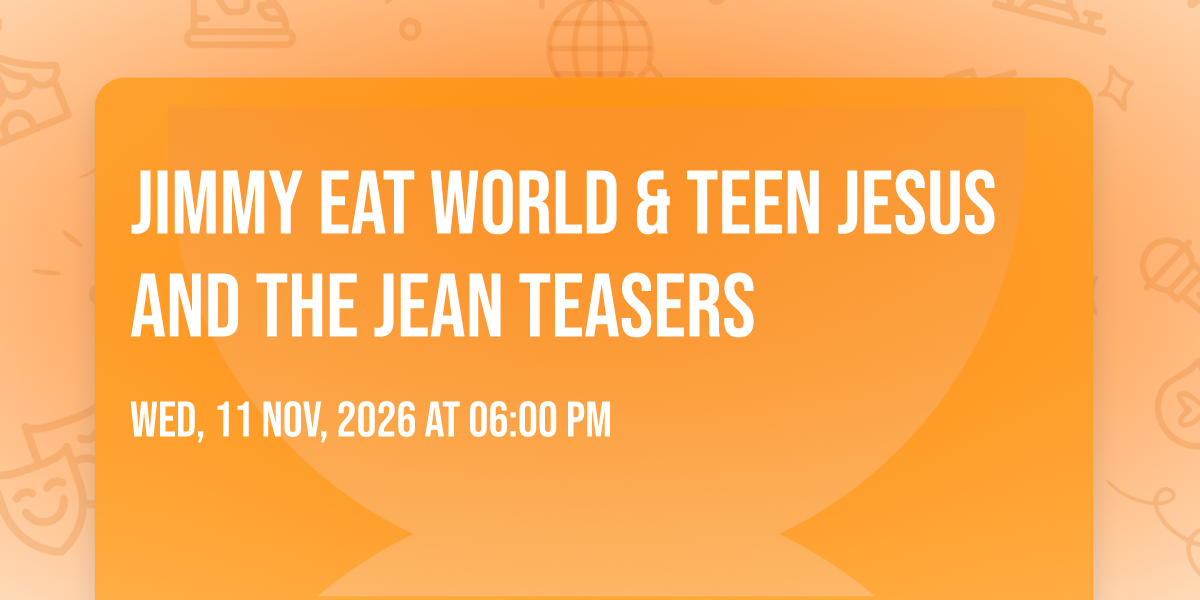 ✨ Embark on an extraordinary journey at Jimmy Eat World & Teen Jesus And The Jean Teasers, where every moment promises to be unforgettable! 🌟 Imagine of transforming The Truth in the heart of Nashville, TN into a realm of endless possibilities. 📅 Join us on November 11th, 2026 at 06:00 PM for an experience that will challenge your imagination and exceed your expectations. 🎯 This carefully curated event combines the finest elements of entertainment, innovation, and community spirit. Whether you're an adventure seeker, culture enthusiast, or someone looking for unique experiences, this event offers something special for everyone. 🎊 Don't miss this chance to be part of something extraordinary!http://maps.seatics.com/TheTruth_EndstageGAFloor_2026-03-17_2026-03-17_0718_03172026_091706_SVGC_tn.png