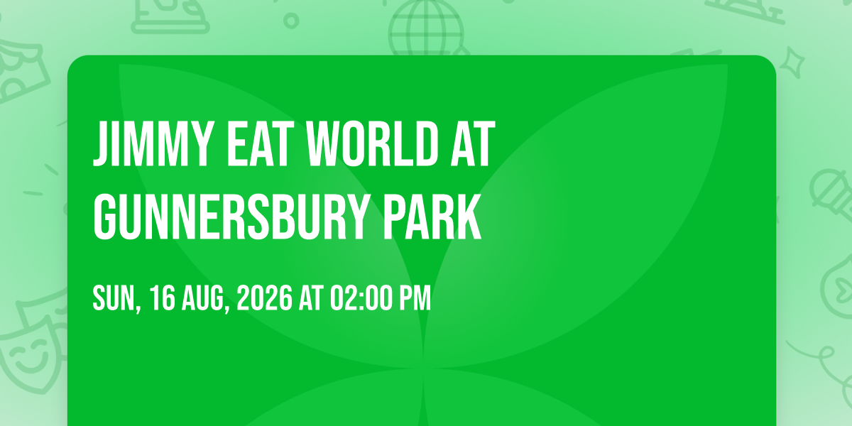 ๐ Welcome to Jimmy Eat World at Gunnersbury Park, where the impossible becomes possible and dreams take flight! ๐๏ธ Join us at Gunnersbury Park in the heart of London, EN for an event that will redefine your expectations. ๐ On August 16th, 2026 at 02:00 PM, witness the transformation of space and time into something truly magical. โจ It's a curated experience combining the best of innovation, entertainment, and community spirit, creating moments that will be remembered for years to come. Whether you're a first-time visitor or a seasoned enthusiast, prepare to be amazed. ๐ Book now to ensure your place in this unforgettable experience!