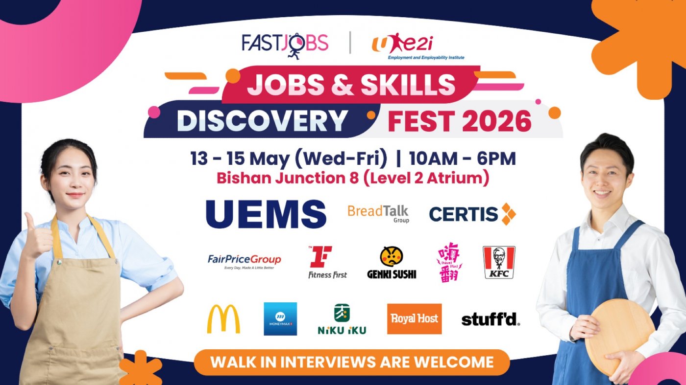 Join the FastJobs x e2i Jobs and Skills Discovery Fest 2026 at Bishan Junction 8 from 13 to 15 May, 10am to 6pm πΌ