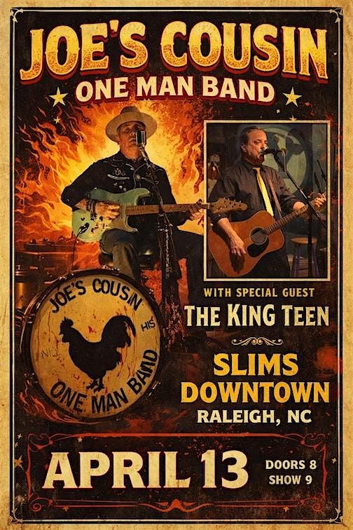 Joe’s Cousin with special guest The King Teen are performing at Slim’s on April 13th, 9pm! Joe’s Cousin is a honkytonk one man band with a rock n roll flair. The King Teen brings punk rockabilly alive on the stage!