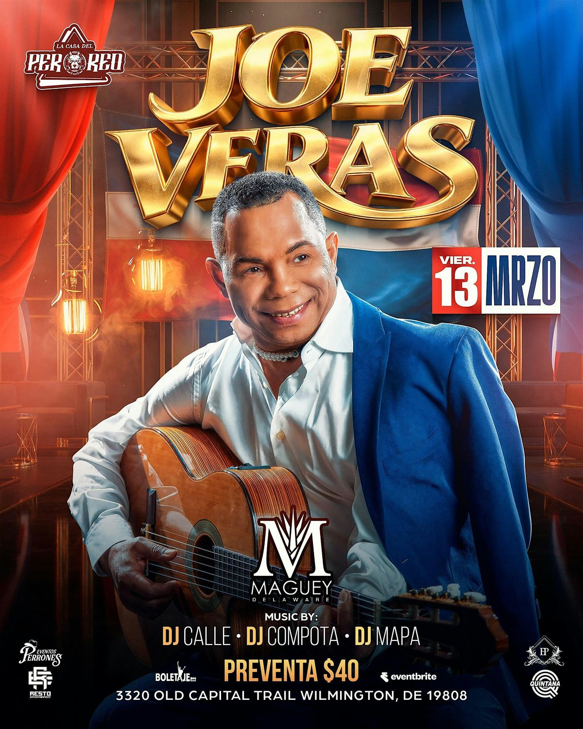 Ven a disfrutar a Joe Veras En Vivo en el famoso El Maguey Delaware. Una experiencia en persona que no te puedes perder. Disfruta de sus mejores éxitos y déjate llevar por su ritmo único en un ambiente súper agradable y lleno de buena vibra. Reúne a tus amigos y vive una noche llena de música y diversión.