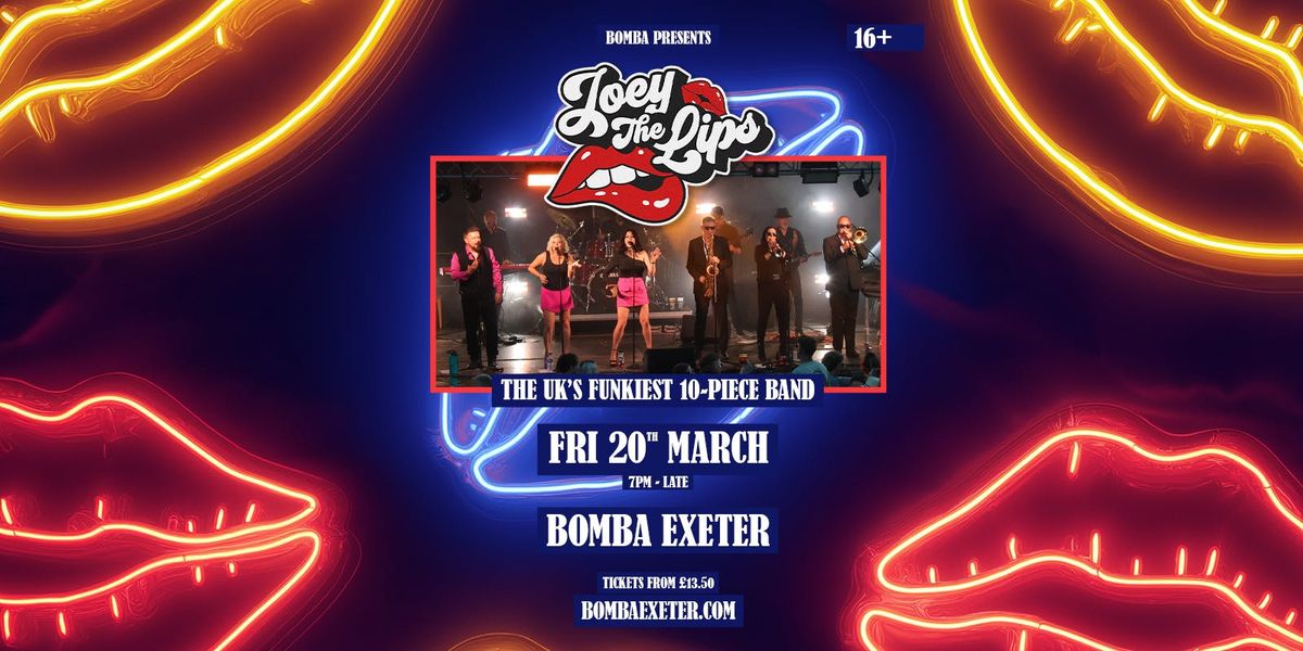 The UK's funkiest 10-piece band are back in Exeter With 32 years on the road, Joey & The Lips have played at a huge variety of venues and festivals throughout the UK and Europe, and have become a regular fixture at Bomba.