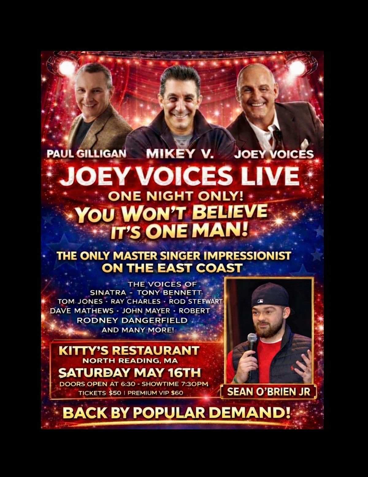 BACK BY POPULAR DEMAND AFTER 3 SOLD OUT SHOWS! JOEY VOICES Along With COMEDIANS MIKE VISELLI, PAUL GILLIGAN & SEAN O'BRIEN JR. at Kitty's Restaurant & Lounge, North Reading MA.