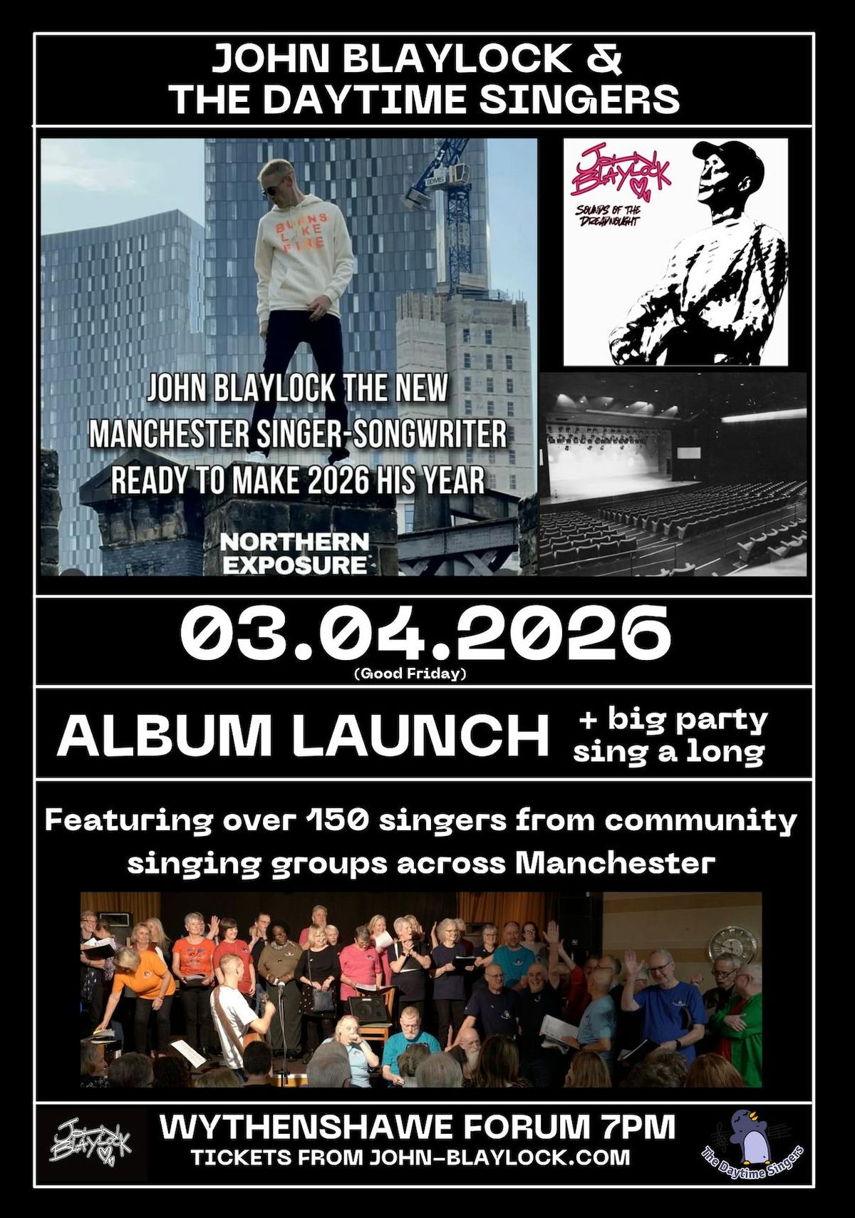An epic evening with over 150 singers from community singing groups across Manchester singing some belting covers like Country Roads / All Together NowJohn will also perform tracks from his album with The Daytime Singers as backing singers. Going to be a lot of fun