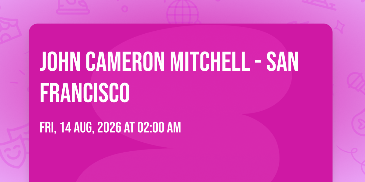๐ Location: 37.762, -122.435๐ Welcome to John Cameron Mitchell - San Francisco, where dreams come alive and possibilities are endless! ๐๏ธ Join us at Castro Theatre in the heart of San Francisco, CA for an event that defies expectations. ๐ On August 14th, 2026 at 02:00 AM, be part of something truly extraordinary as we bring together innovation, entertainment, and pure magic. โจ Every aspect has been carefully designed to ensure an unforgettable experience for all our guests. Whether you're seeking adventure, inspiration, or simply a break from the ordinary, this event promises to deliver beyond your wildest dreams. ๐ Prepare for a journey into the extraordinary!