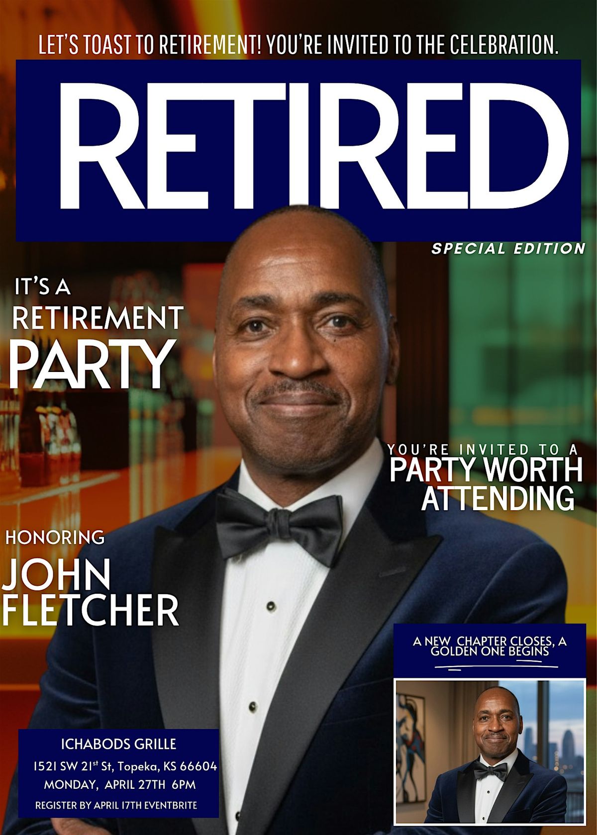 Let’s come together to honor John's years of dedication, hard work, and the incredible impact he’s made throughout his career. We look forward to celebrating this exciting new chapter with great food, laughter, and wonderful company! 🥂✨