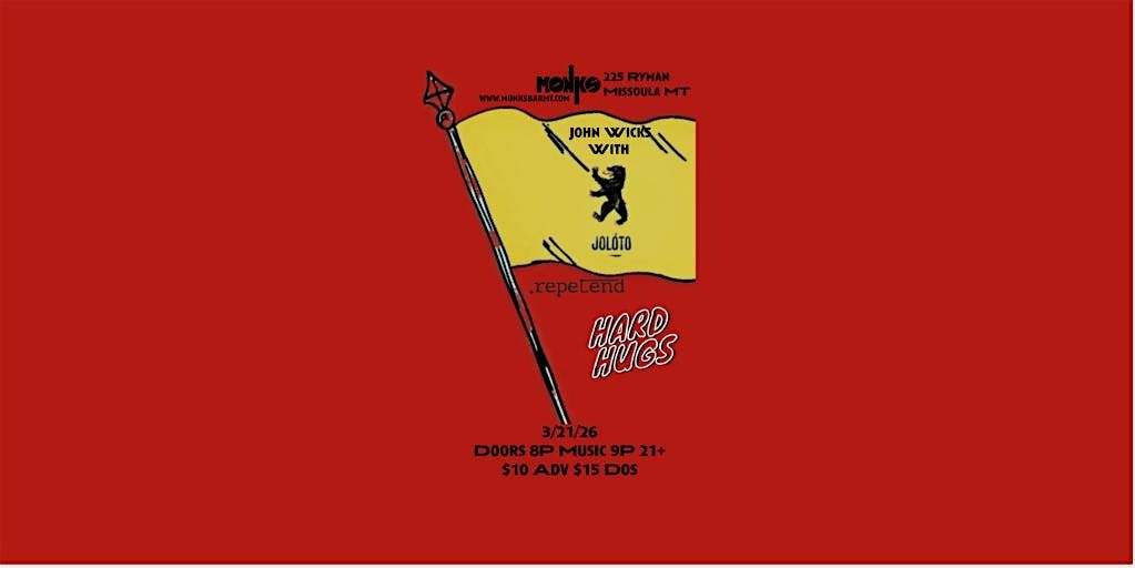 John Wicks With Jóloto Live At Monk’s with special guests .repetend and Hard Hugs!