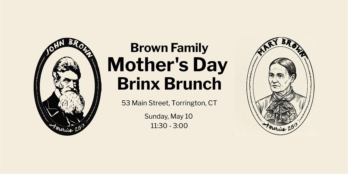 Cap off John Brown Week with an abolitionist Mother's Day Brunch in downtown Torrington at Brinx Cafe and Cocktails. Celebrate the abolitionist spirit that was kindled right here in Torrington, as we promote John Brown's ideals of 'all people created equal' and the Golden Rule.