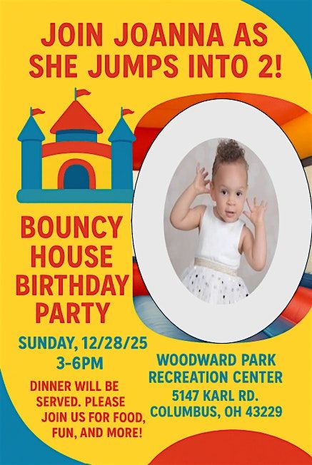 Come join us for Joanna's 2 Year Birthday Party Celebration! This fun, bouncy house experience is all about making awesome memories and you are invited! You are selcome to dine with us, eat cake, share laughs, and lots of smiles. Bring your energy and get ready to celebrate this special day with friends and family. There will be games, music, and a whole lot of joy. Don’t miss out on the chance to make awesome memories with Joanna on her big day!