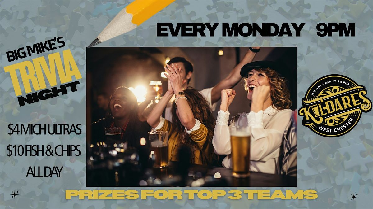 Welcome to the Monday Night Trivia with Big Mike! 🎉 Get ready for a fun night filled with brain-teasing questions and great company at Kildare's.