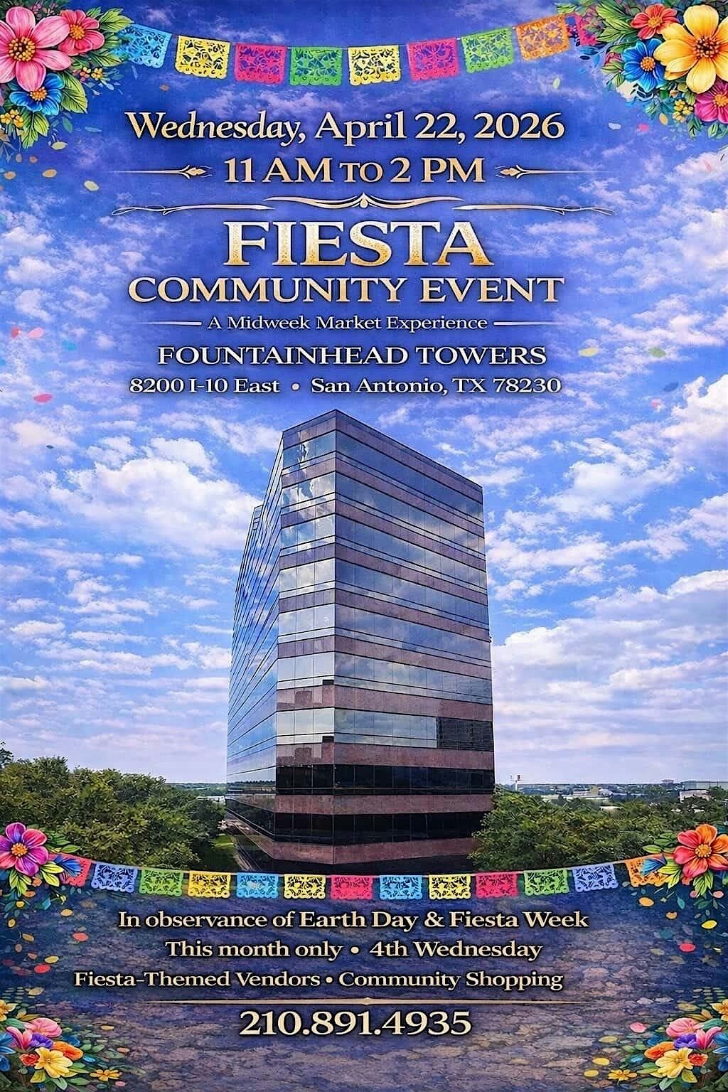 Join us for a midweek market experience at Fountainhead TowersJoin us for a midweek market experience at Fountainhead Towers in celebration of Fiesta and Earth Day