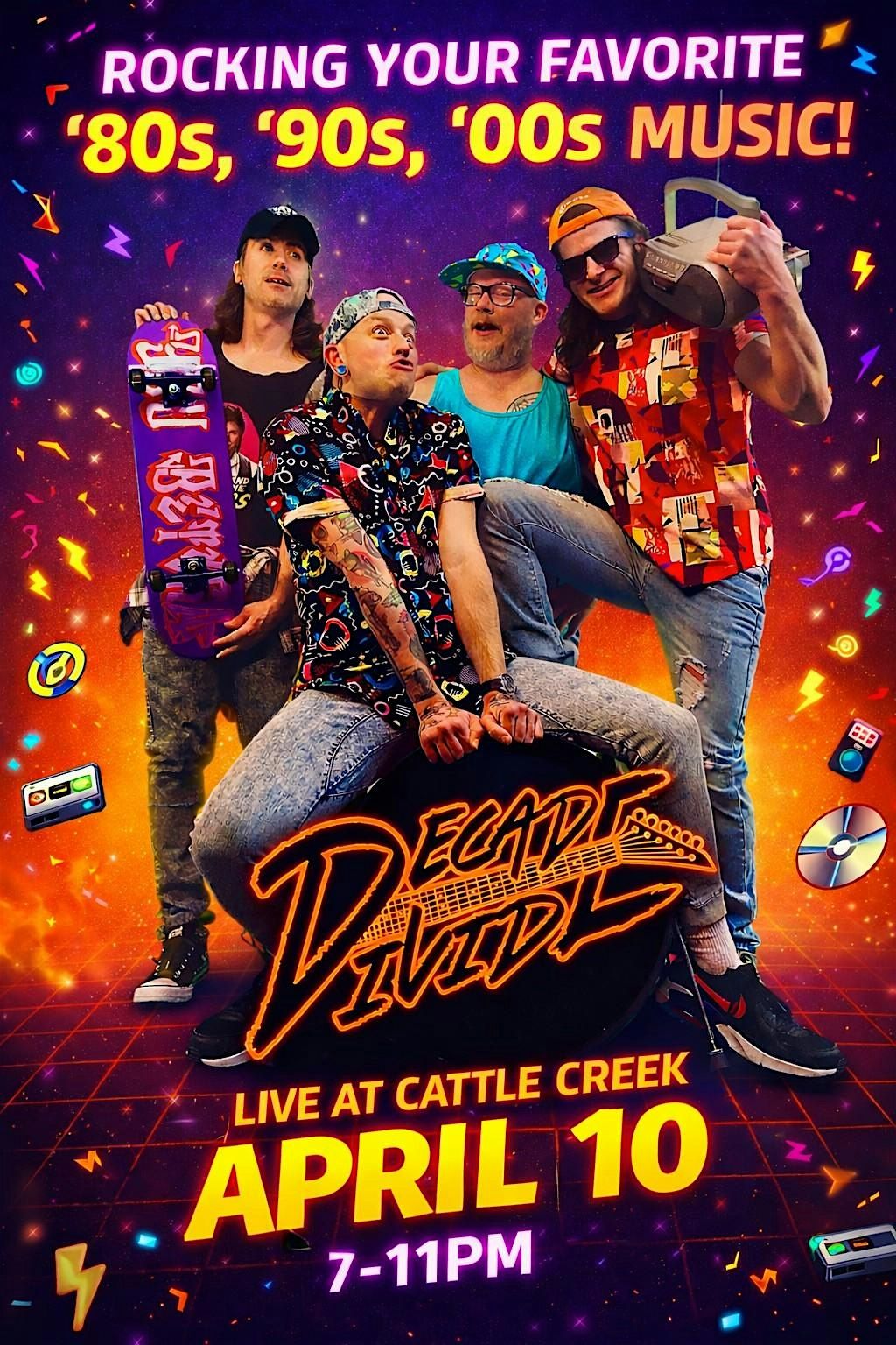 Decade Divide will take you on a journey through your favorite songs from the 80-'s, 90's and 00's! Join us for an unforgettable evening!