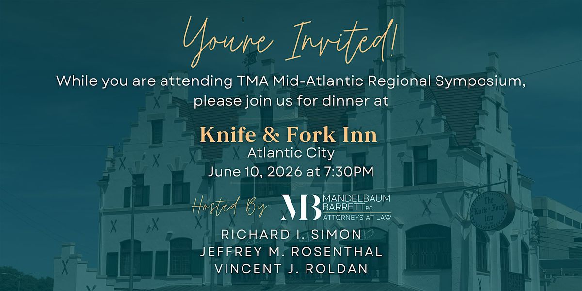 While you are attending TMA Mid-Atlantic Regional Symposium, please join us for dinner at Fork and Knife Inn at Atlantic City on June 10th!About this Event