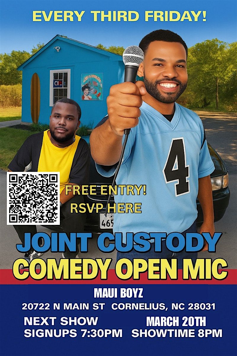 JOINT CUSTODY comedy open mic, co-hosted by the hilarious duo Jordan Centry & Don Garrett, is taking over Maui Boyz and it's gonna be a night full of big laughs!