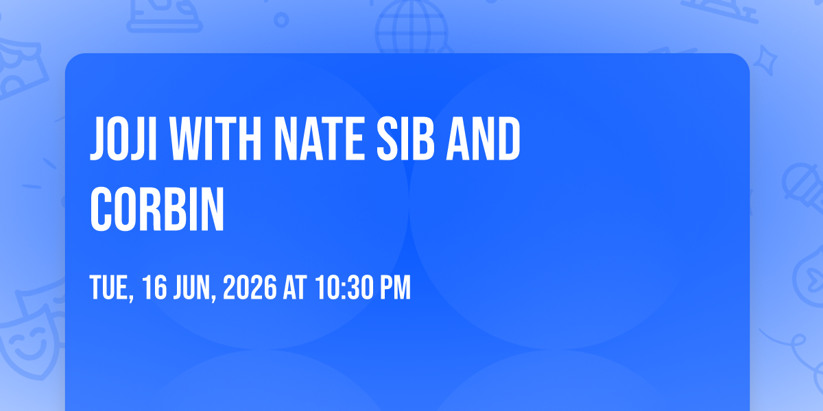 ๐ Location: 40.7332, -74.1717โจ Embark on an extraordinary journey at Joji with Nate Sib and Corbin, where every moment promises to be unforgettable! ๐ Imagine of transforming Prudential Center in the heart of Newark, NJ into a realm of endless possibilities. ๐ Join us on June 16th, 2026 at 10:30 PM for an experience that will challenge your imagination and exceed your expectations. ๐ฏ This carefully curated event combines the finest elements of entertainment, innovation, and community spirit. Whether you're an adventure seeker, culture enthusiast, or someone looking for unique experiences, this event offers something special for everyone. ๐ Don't miss this chance to be part of something extraordinary!