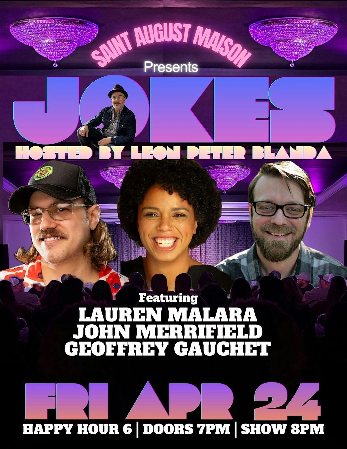 Saint August Maison presents JOKES: Stand-up Comedy featuring the funniest comedians in the world. Happy Hour 6pm | Doors 7pm | Show 8pm