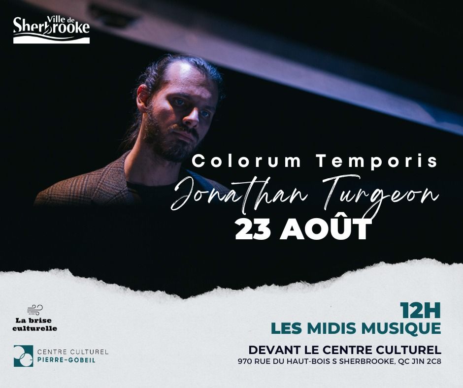 Le Centre Culturel Pierre-Gobeil est fier de présenter le compositeur Jonathan Turgeon et son spectacle Colorum Temporis dans le cadre de nos midis de musique pour la Brise culturelle.Jonathan Turgeon présente son nouveau spectacle Colorum Temporis, de la musique cinématographique inspirée de l’electro acoustique, de la musique de film et du jazz. Colorum Temporis est une exploration de la matière sonore et de sa transformation à travers un monde d’effets.